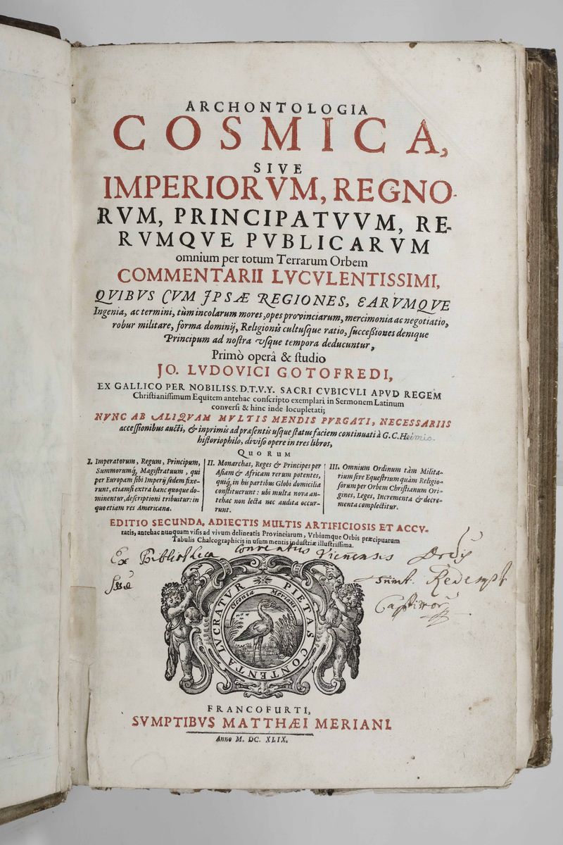 Archontologia Cosmica sive imperorum, regnorum,principatuum, rerumque publicarum..Editio Secunda..Francofurti, Sumptibus Matthaei Meriani,1649