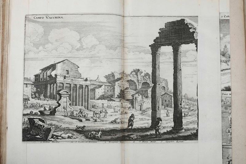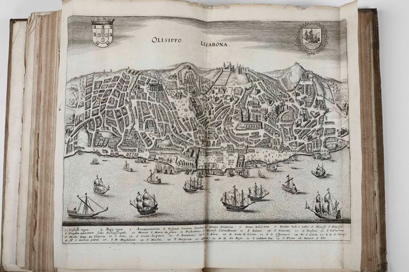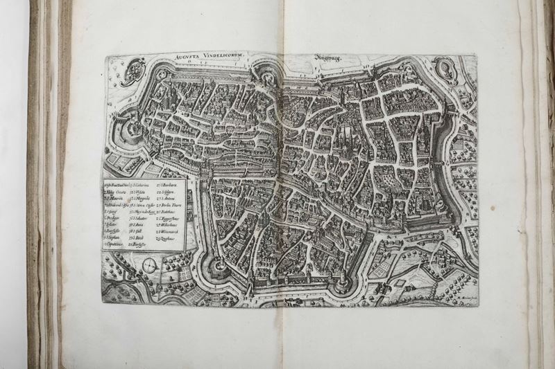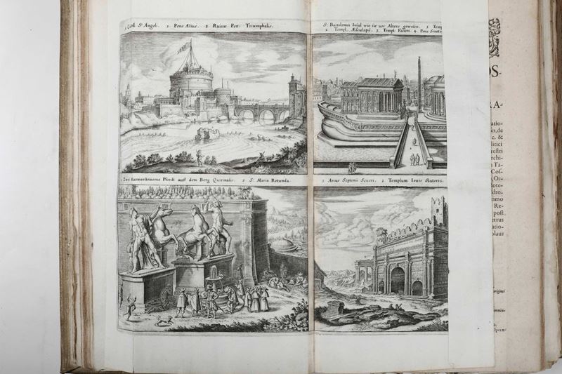 In-folio.494 pp. Legatura coeva in pelle di scrofa impressa. Dorso in pelle. Solo tomo primo contenente, oltre al frontespizio calcografico, 110 incisioni(Le ultime tavole presenti riguardano il Regno Sabaudo e la Liguria). Ex libris nobiliare al contropiatto anteriore. Alcune carte staccate. Bruniture e gore.