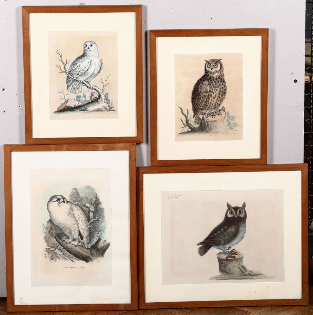Gruppo si stampe raffiguranti gufi e civette, XIX secolo