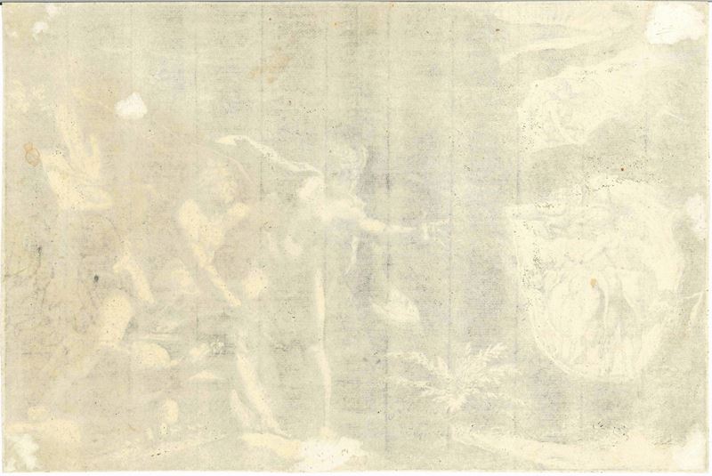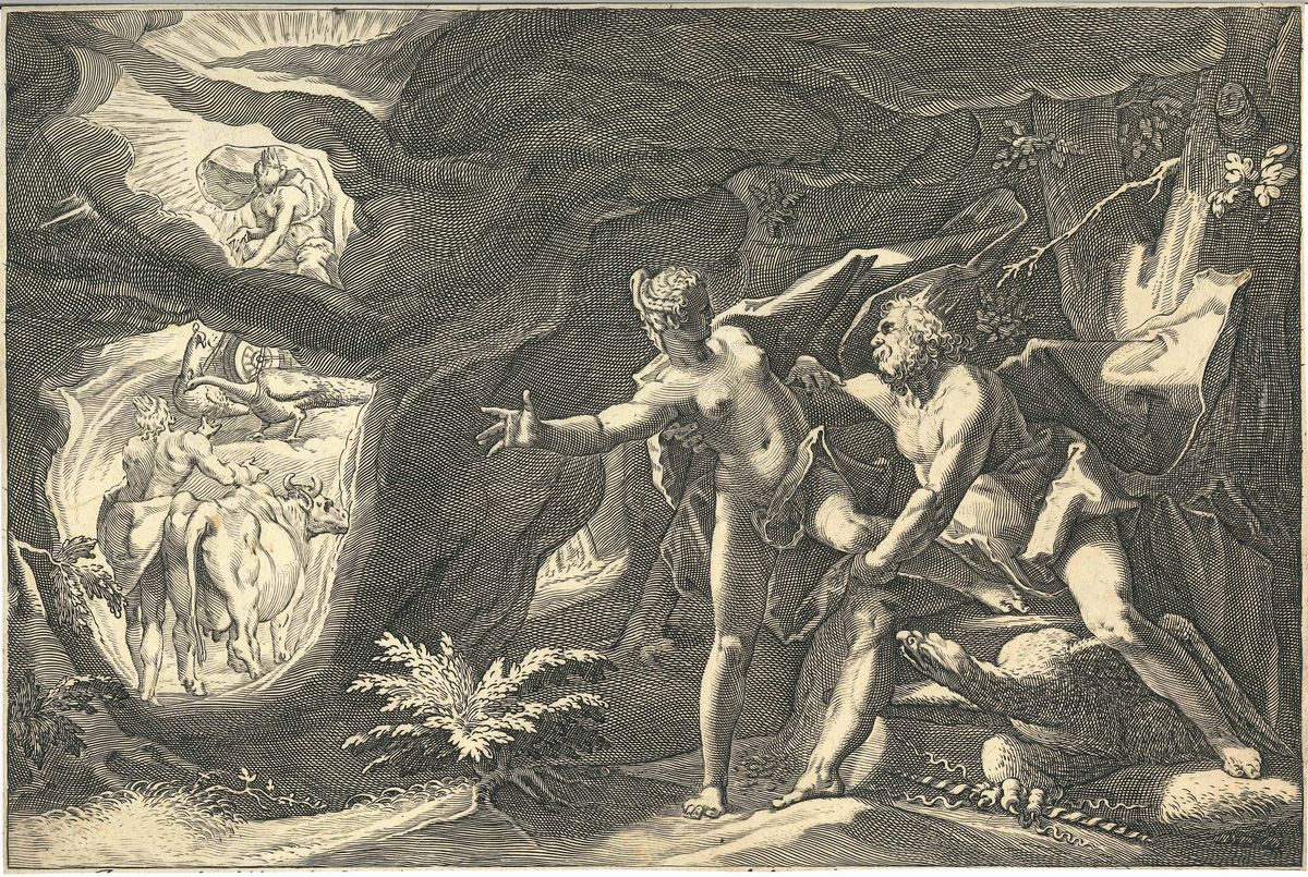 La prova, impressa su carta avente filigrana con Aquila, tipicamente in uso nell'Olanda di fine Cinquecento, appartiene alla serie di 52 stampe che illustrano le Metamarfosi di Ovidio, disegnate da Goltzius nel 1589-1590 e stampate ad Amsterdam da Robert de Baudons. Bibliografia: Bartsch, III, p. 61, nn. 31-82; Bartsch, Illustrato, III, p. 320, n. 47; Hollstein, nn. 508-559