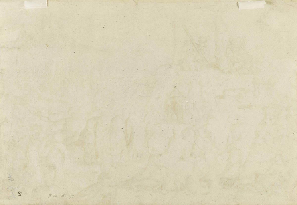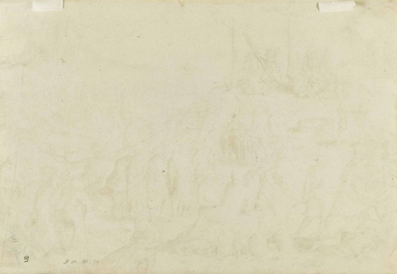 La prova, monogrammata e datata, è impressa su carta avente filigrana Campana con lettere databile alla seconda metà del Cinquecento. Sul verso è apposto il timbro del collezionista inglese C.D. Ginsburg (1831-1914). Bibliografia: Filedt-Kok, n. 74; Bartsch, n. 74; Hollstein, n. 74; Salomon, n. 73; Jacobowitz, n. 56; Petrioli, n. 46; Ex-coll.: Lugt, n. 1145