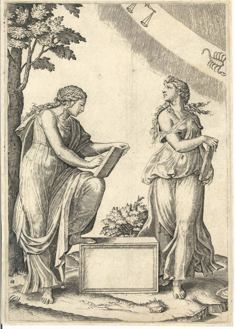 Marcantonio Raimondi (Molinella, 1479 ca. – Bologna, prima del 1534) Due sibille con lo zodiaco