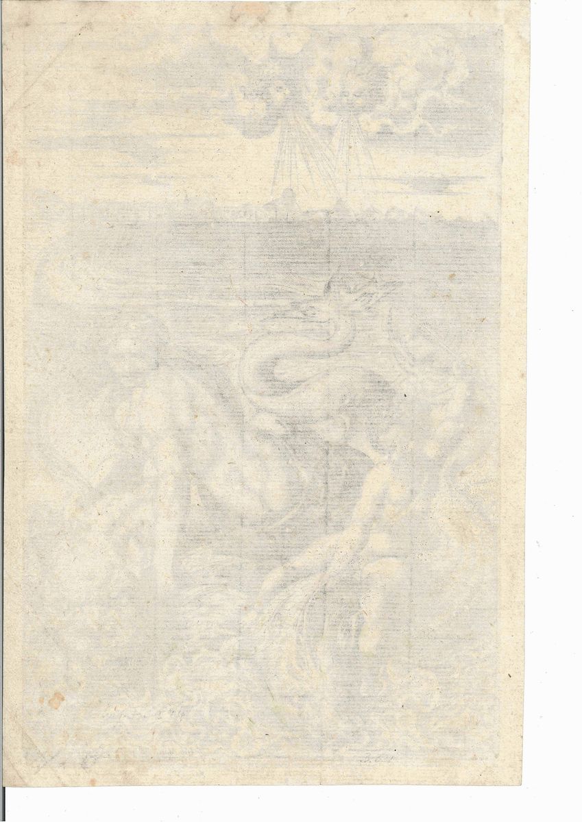 La prova, contrastata e nitida, edita nel terzo stato di 3 da Marco Paluzzi, stampatore a Roma verso il 1550, è impresso su carta databile alla metà del Cinquecento. Il soggetto è tratto da un disegno di Raffaello per l'affresco eseguito dall'allievo Giulio Romano intorno al 1516, sulla parete della Stufetta del Cardinal Bibbiena. Bibliografia: Bartsch, n. 324; Raphael Invenit, p. 61; Bertelà, n. 219.