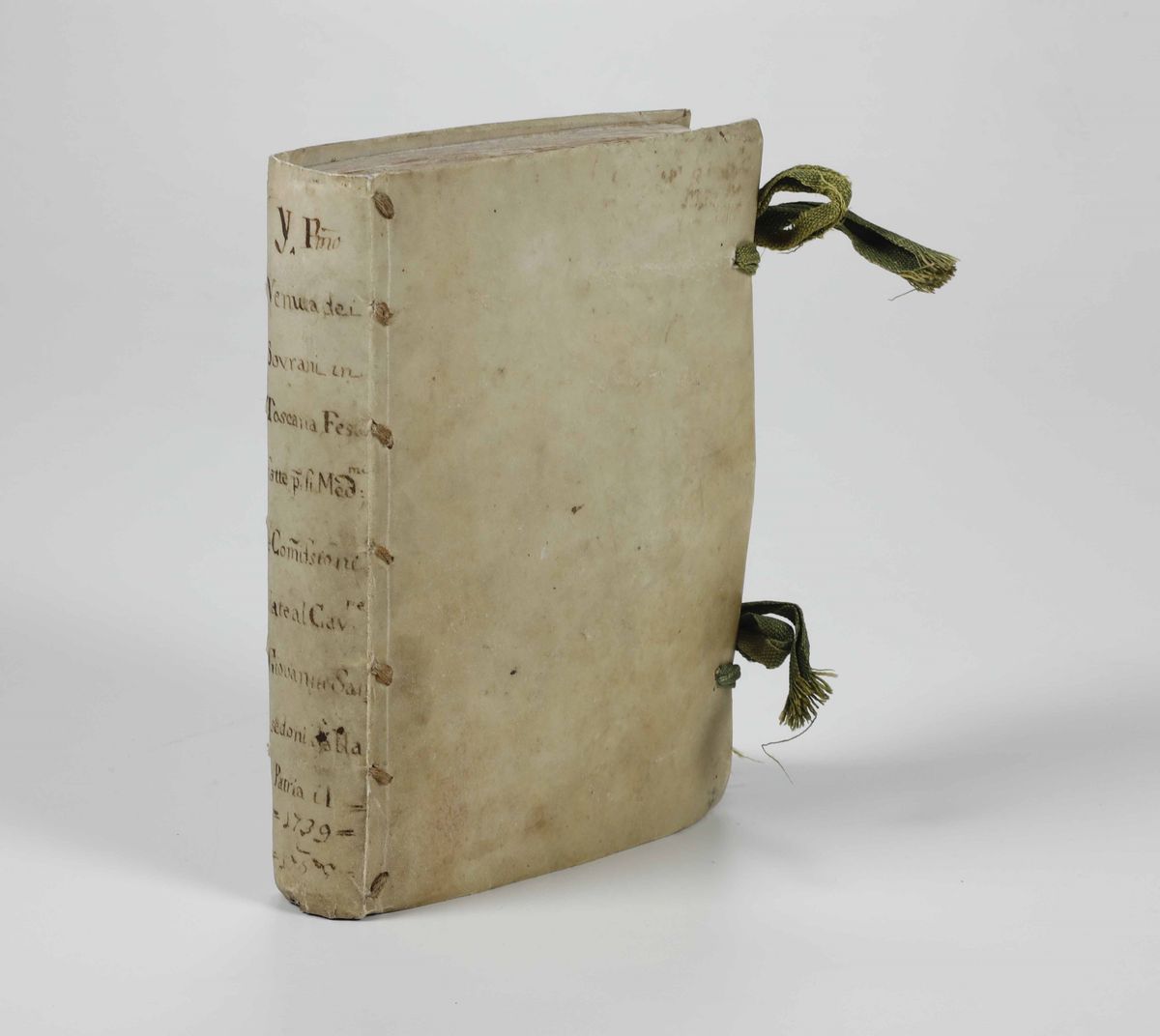 In-4°. Legatura coeva in piena pergamena. Interessante volume miscellaneo che raccoglie numerose documenti, per lo più a stampa, inerenti il viaggio in Toscana di Francesco III e Maria Teresa d'Austria..
