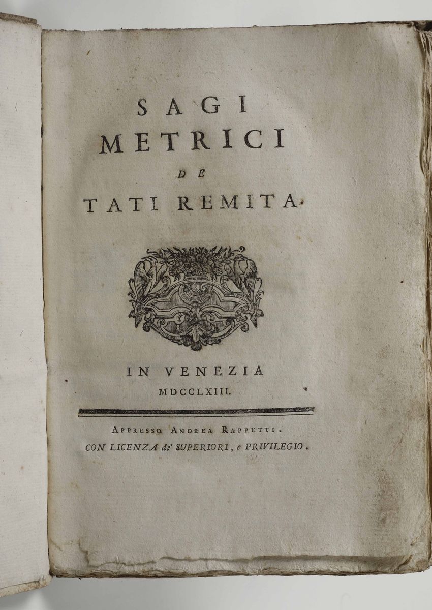 Sagi metrici di Tati Remita..Venezia, Rappetti,1763(Insieme a:) Sagi metrici..parte seconda. Venezia,Deregni,1765