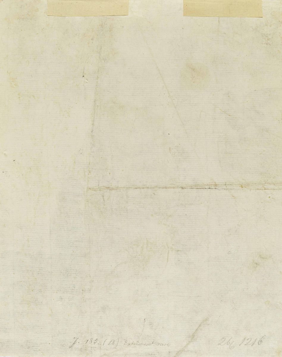 La prova, firmata, è impressa su carta avente filigrana Monti databile verso la metà del Seicento. Apposto sul retro compare il timbro del Gabinetto delle Stampe di Berlino. Bibliografia: Vesme, n. 69; Bellini, Seicento, n. 100; Mito e Allegoria, n. 242; Filigrana: Ortolani, 9; Ex.Coll: Lught 1612
