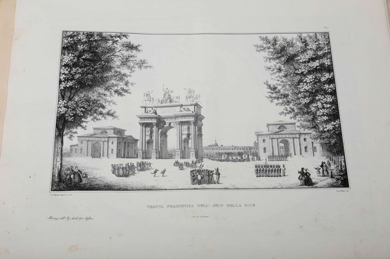 Illustrazione dell'Arco della Pace in Milano dedicato a S. E. il conte Francesco di Hartig governatore della Lombardia..Milano,1835