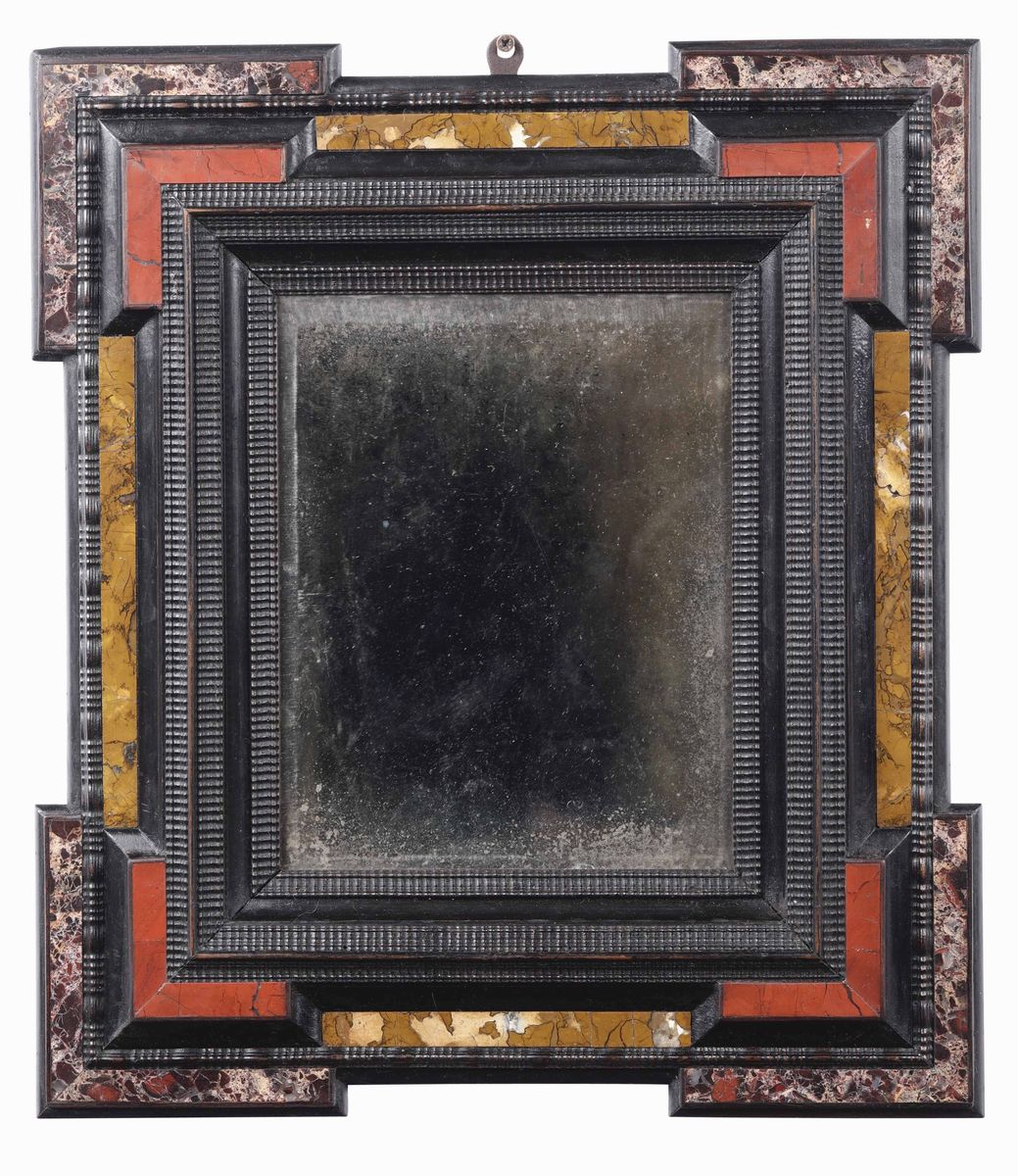 Coppia di cornici in legno intagliato ed ebanizzato. Modello alla fiamminga con inserti in pietre dure. Manifattura del [..]