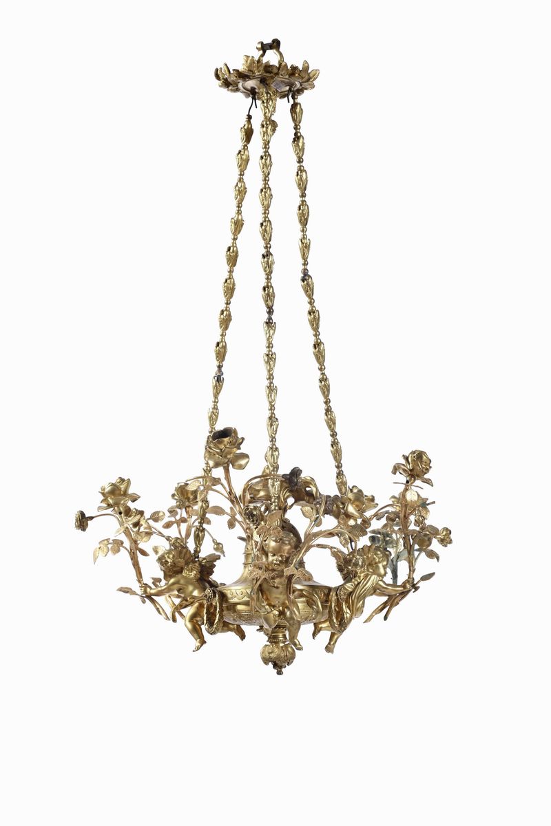 Piccolo lampadario in bronzo dorato, XIX-XX secolo