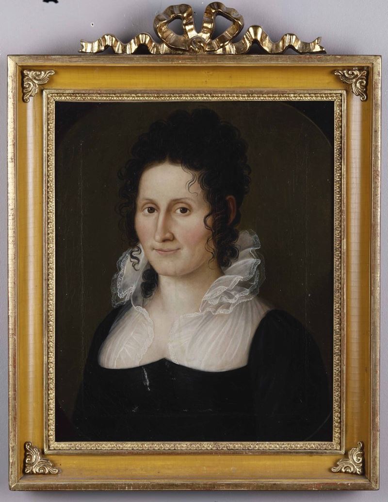 Artista del XIX secolo Ritratto di gentildonna in corpetto nero stringato e pettorina bianca Ritratto di gentiluomo in ne [..]