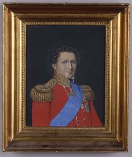 Ritratto di ufficiale in alta uniforme rossa Ritratto di dama in abito bianco