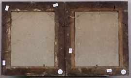 coppia di dipinti a tecnica magra mista su carta applicata su cartoncino, cm 24x18