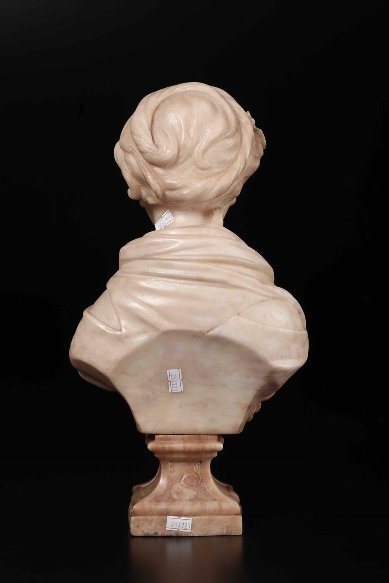 Busto di fanciulla in marmo bianco. A firma Gregoire Geuze, probabile XX secolo