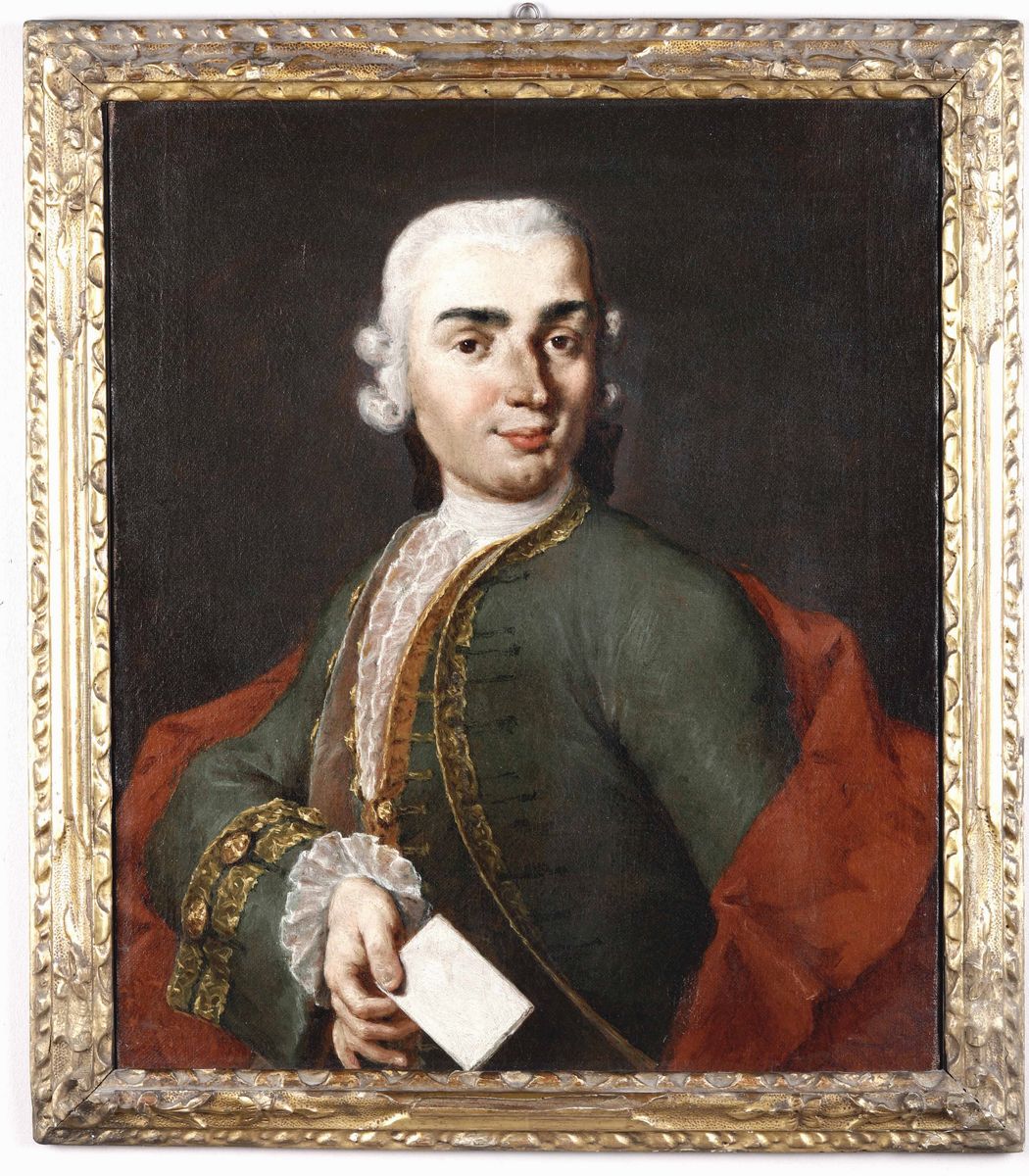 Giuseppe Bonito (Castellammare di Stabia 1707 - Napoli 1789) Gentiluomo con giacca verde, drappo rosso e lettera in mano