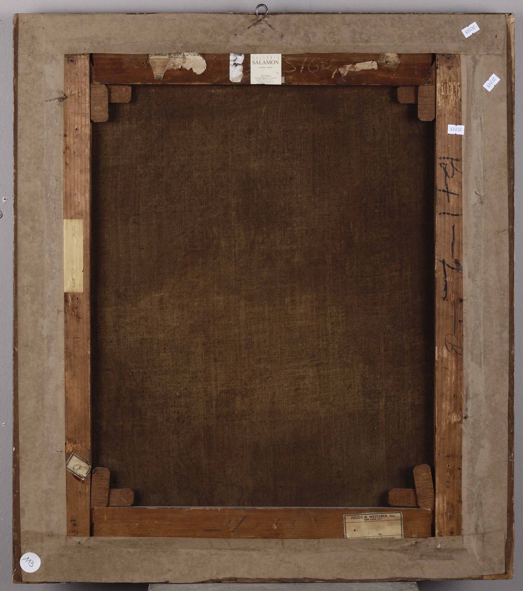 Sul retro vecchia etichetta cartacea della Galleria Julius H. Weitznerdi New York con attribuzione ad Alessandro Longhi