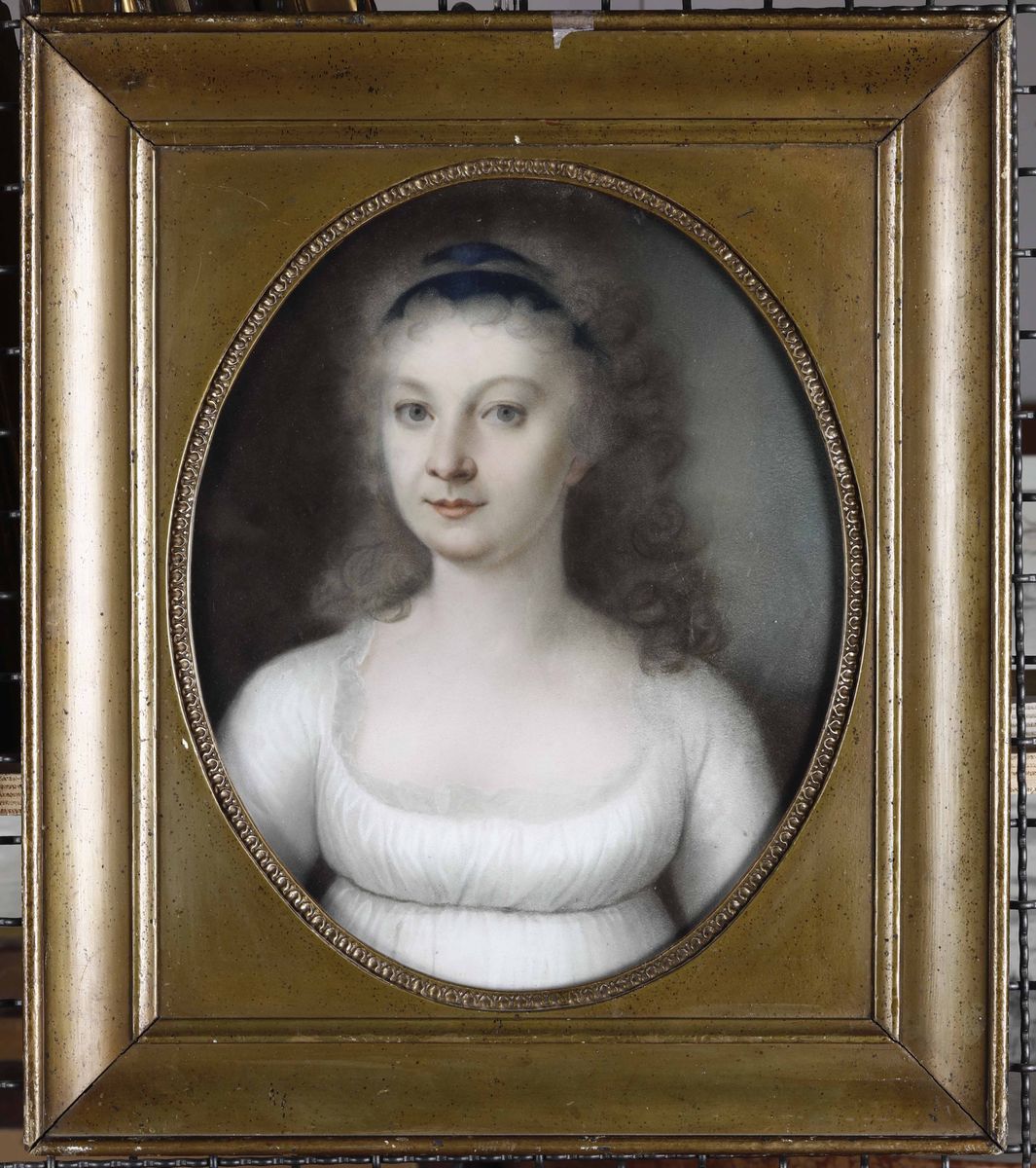 Pittore dell’inizio del XIX secolo Ritratto di gentildonna in abito bianco Ritratto di gentiluomo in giacca blu