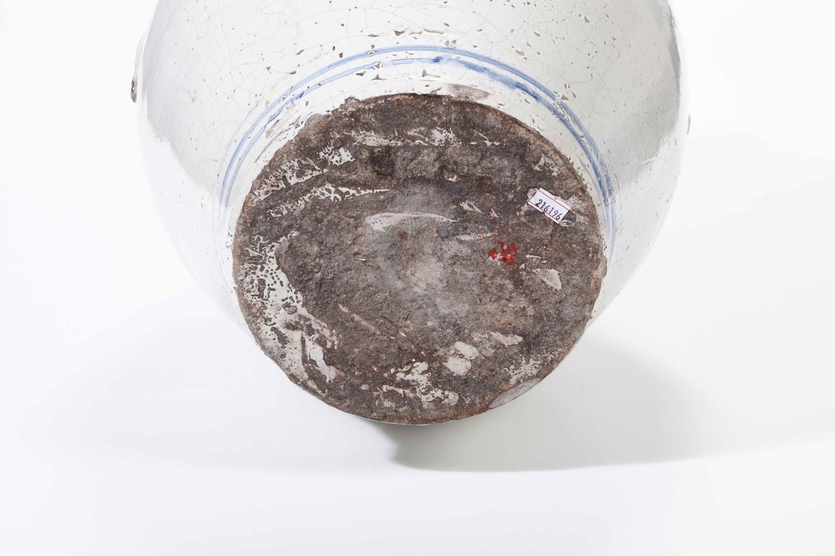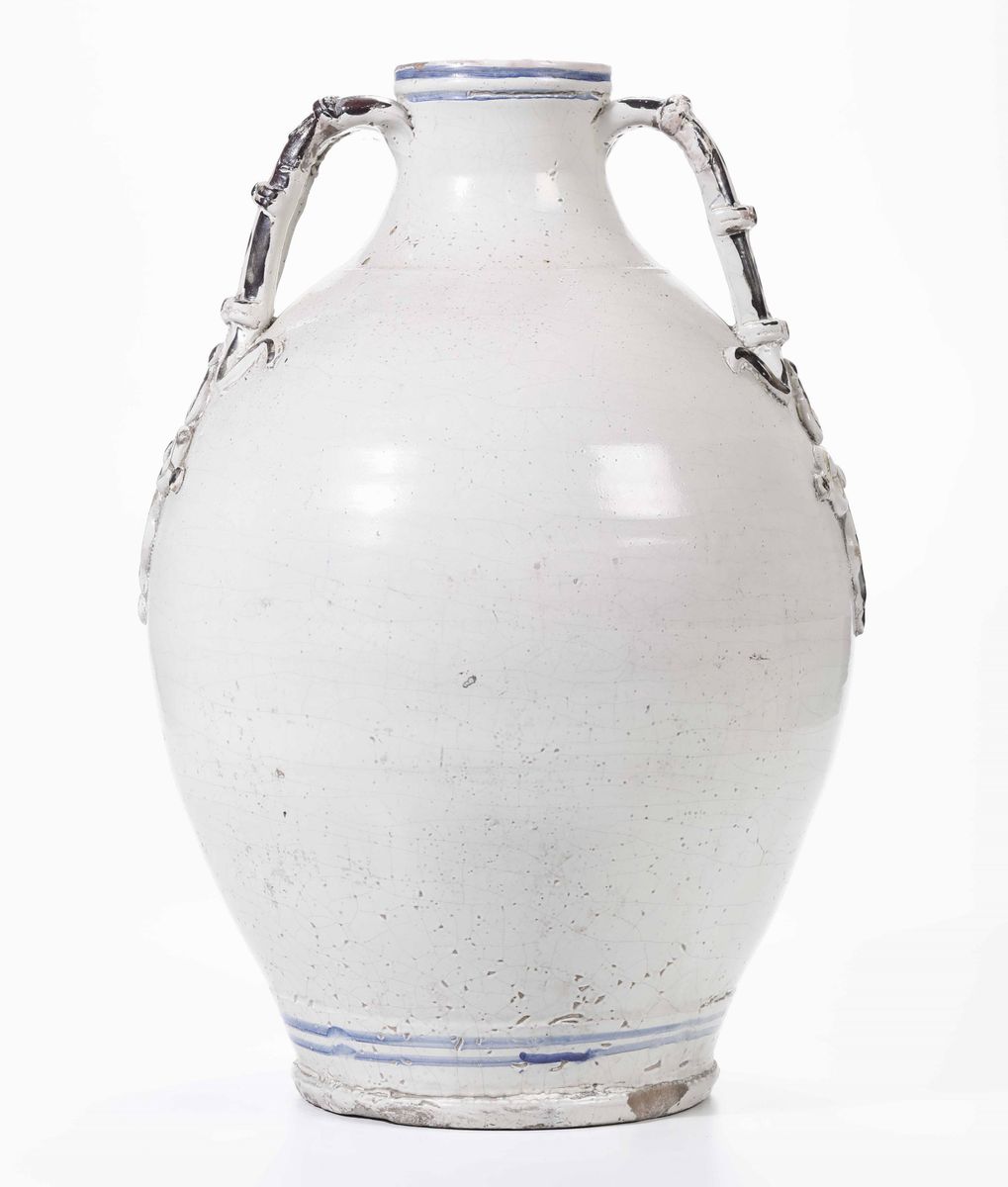 Maiolica. Marca: assente. Altezza cm 52. Conservazione: minime sbeccature