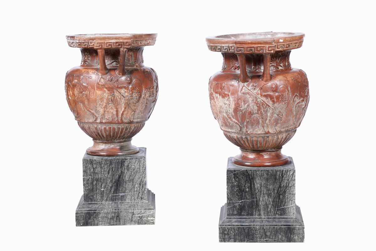 Coppia di grandi crateri in terracotta in stile classico. XIX-XX secolo