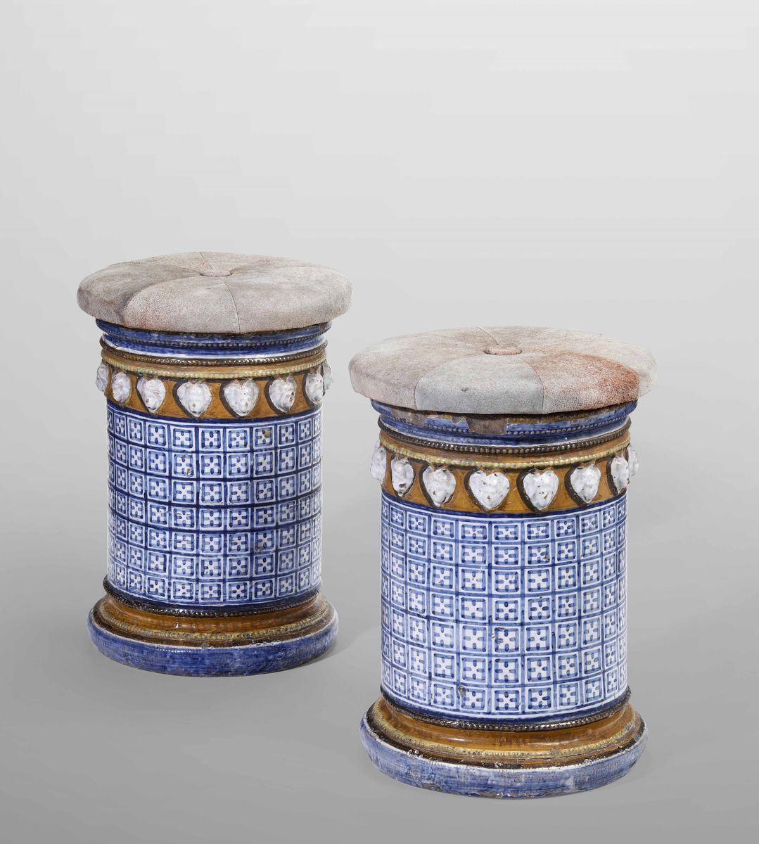 Coppia di panchetti cilindrici Italia meridionale, XX secolo