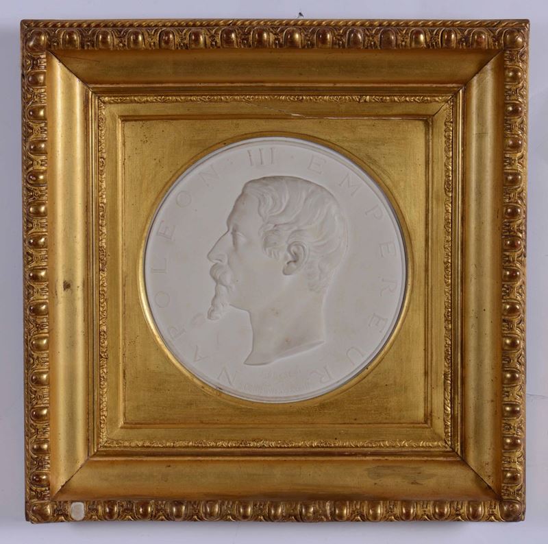 Due medaglioni in biscuit raffiguranti Napoleone III e consorte, XIX secolo