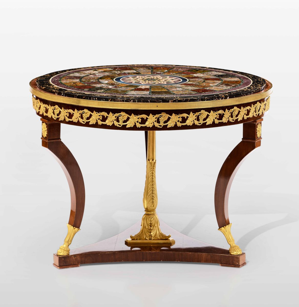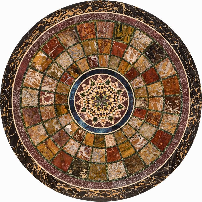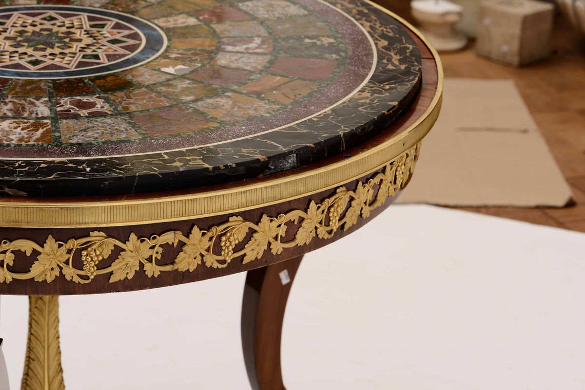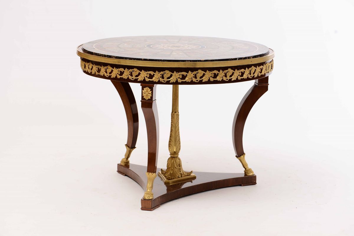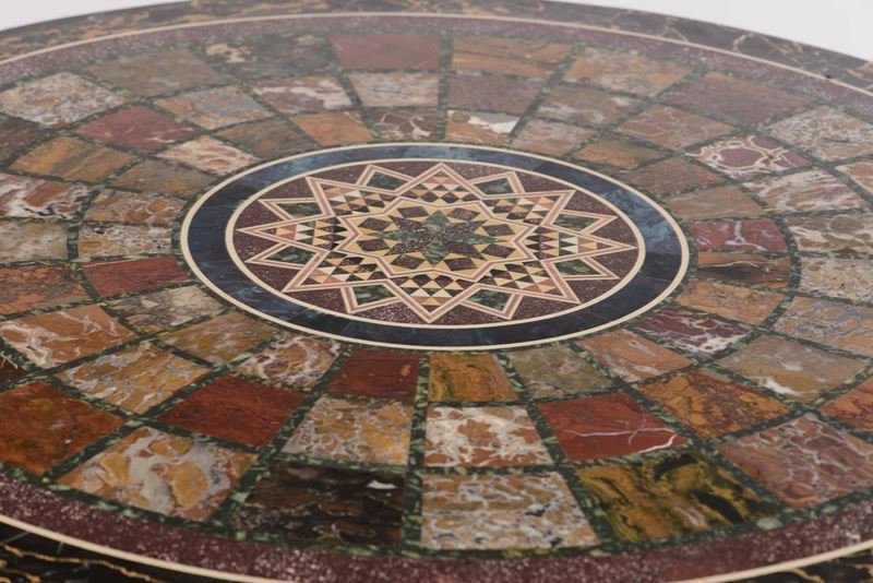 Elegante tavolo da centro con piano circolare in commesso di pietre dure. XIX-XX secolo