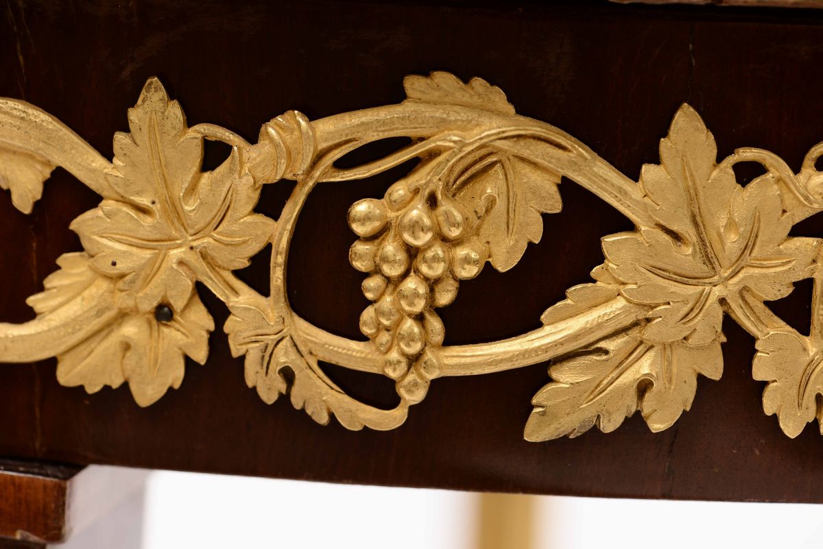 Sostegno a tripode con piedi caprini. Ricchi decori in bronzo fuso e dorato di gusto neoclassico