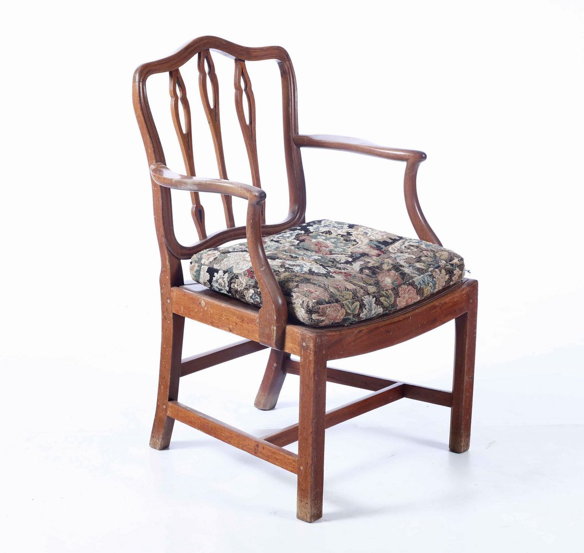 cm 125x65x101, nel lotto anche poltrona in noce (difetti, mancanze)