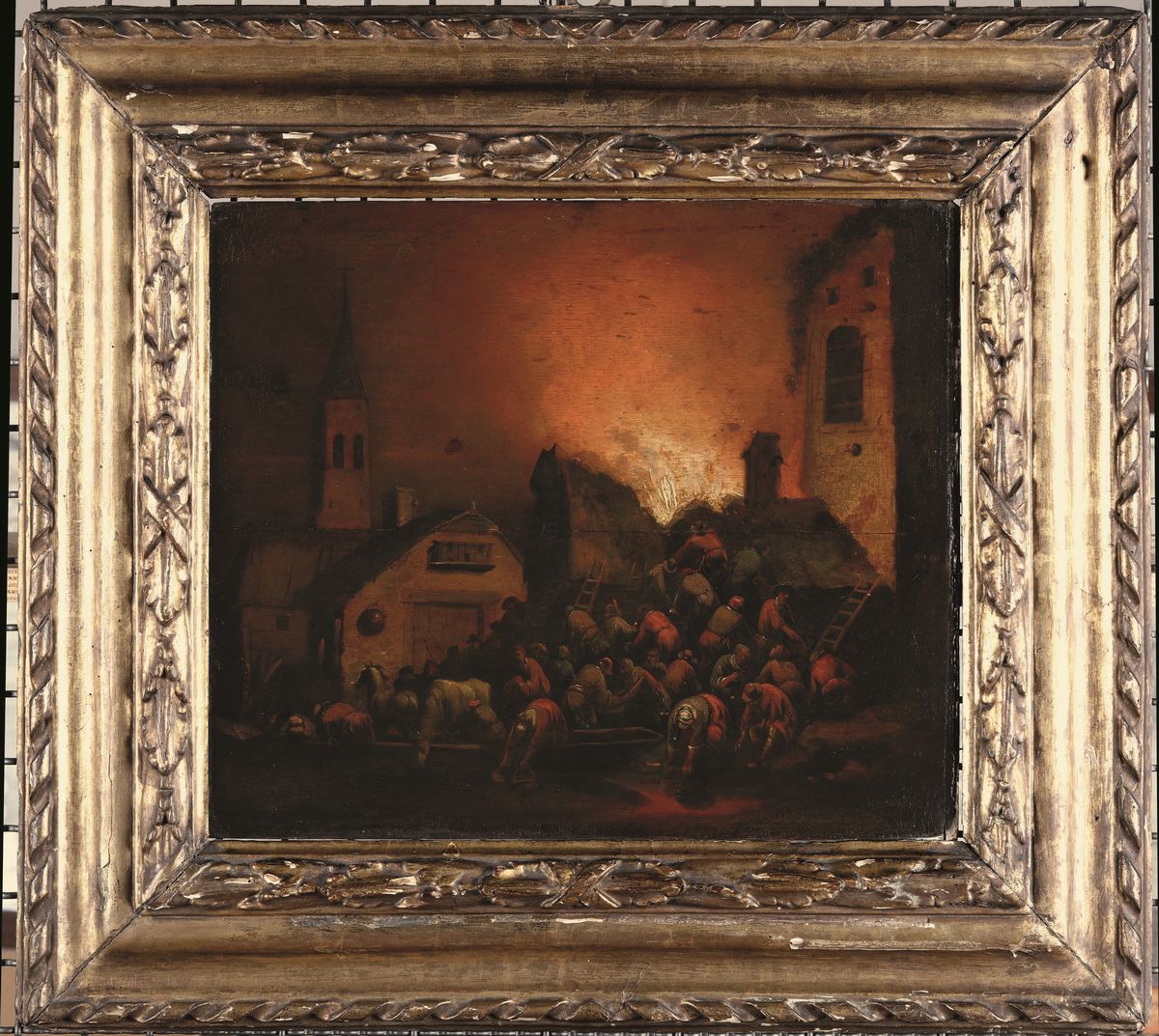 Adriaen Lievensz van der Poel (Delft 1628 - Leida 1671), attribuito a Incendio
