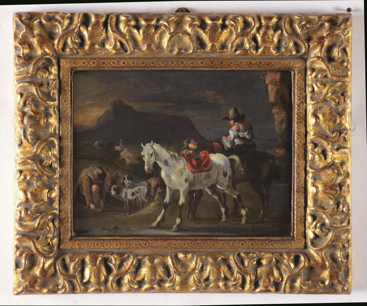 Gerard Douw (Leida 1613-1675) Paesaggio di montagna con cavalieri
