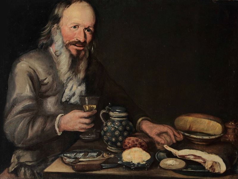 Pittore lombardo del XVIII secolo Natura morta con anziano