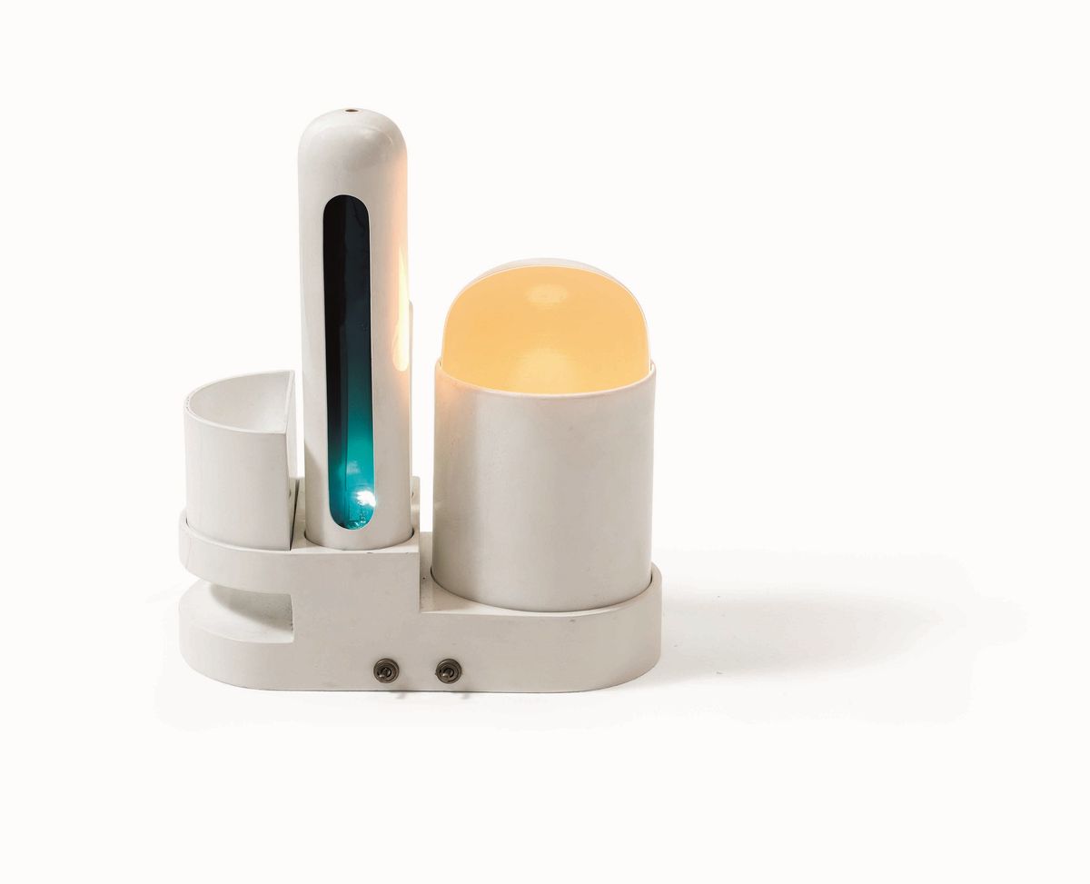 Lampada da tavolo mod. Rimorchiatore in metallo laccato e acetato plastico.