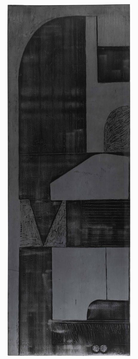 Due pannelli scultorei da parete in metallo.