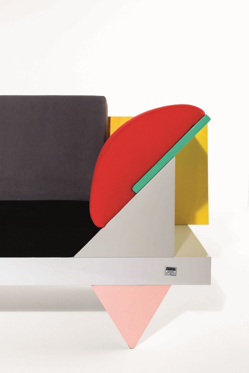 Divano mod. Big Sur con struttura in legno laccato e rivestimenti in tessuto. Etichetta originale.