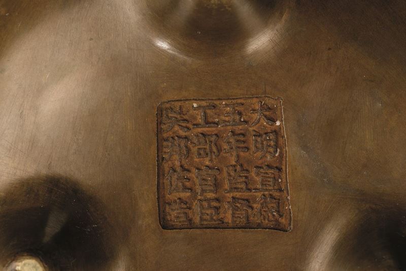 A double handle censer with inscription. Xuande apocryphal mark. 10x13.5x13cm