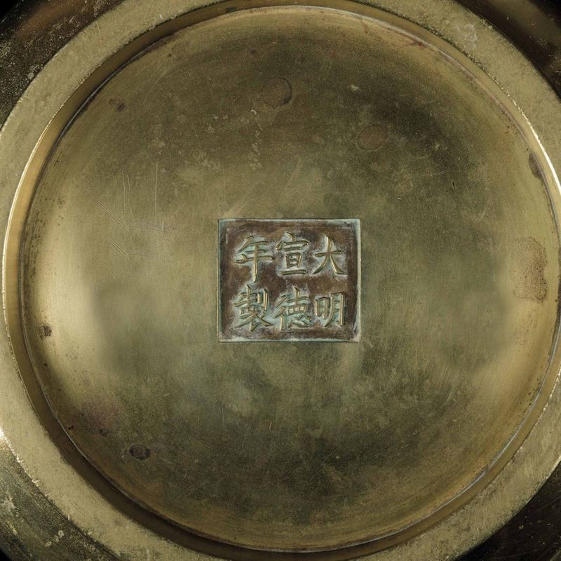 A double-handled censer. Xuande apocryphal mark. 8.7x21cm