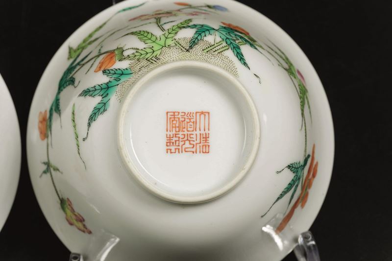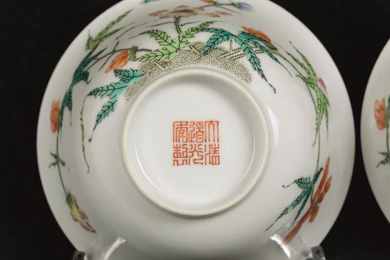 A pair of porcelain bowls with flower decorations, Daoguang period (1821-1850). 6.5x11.5cm