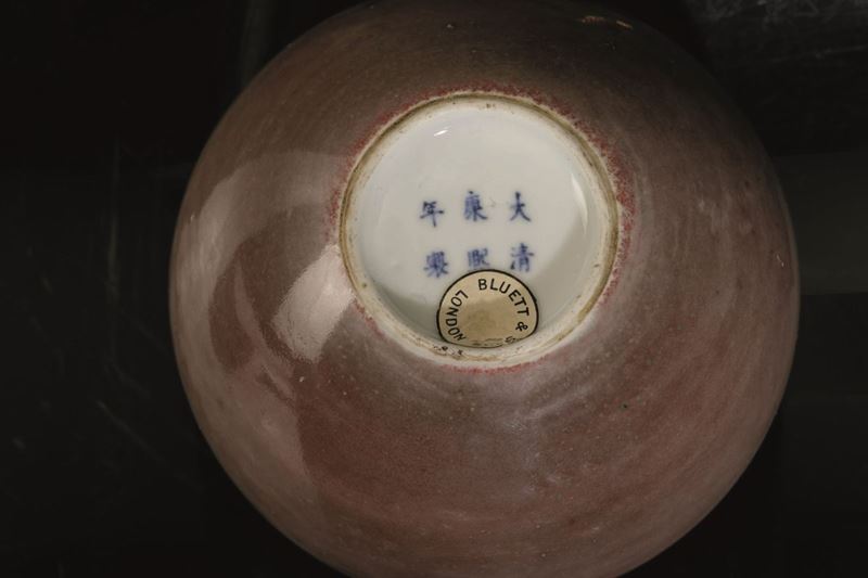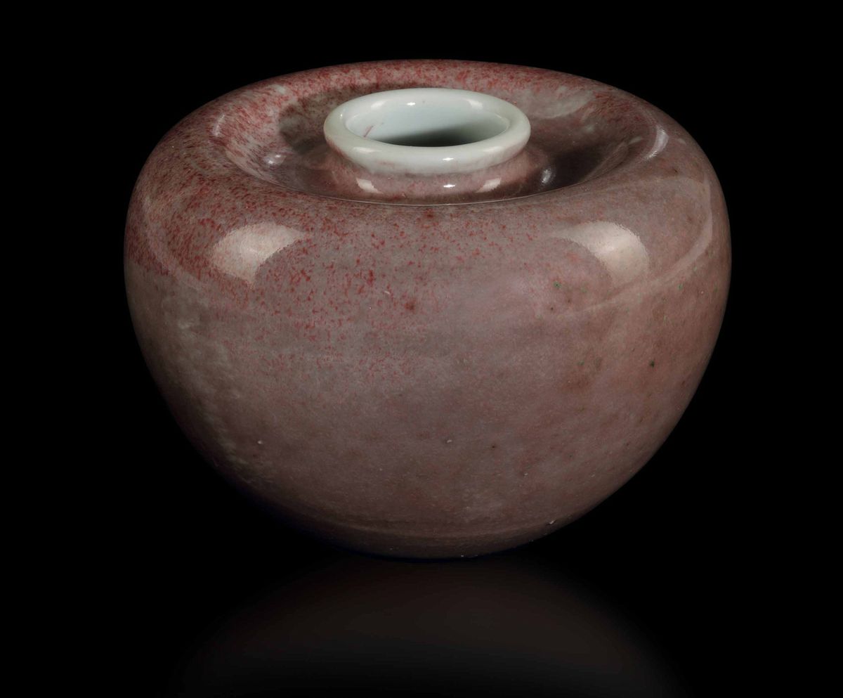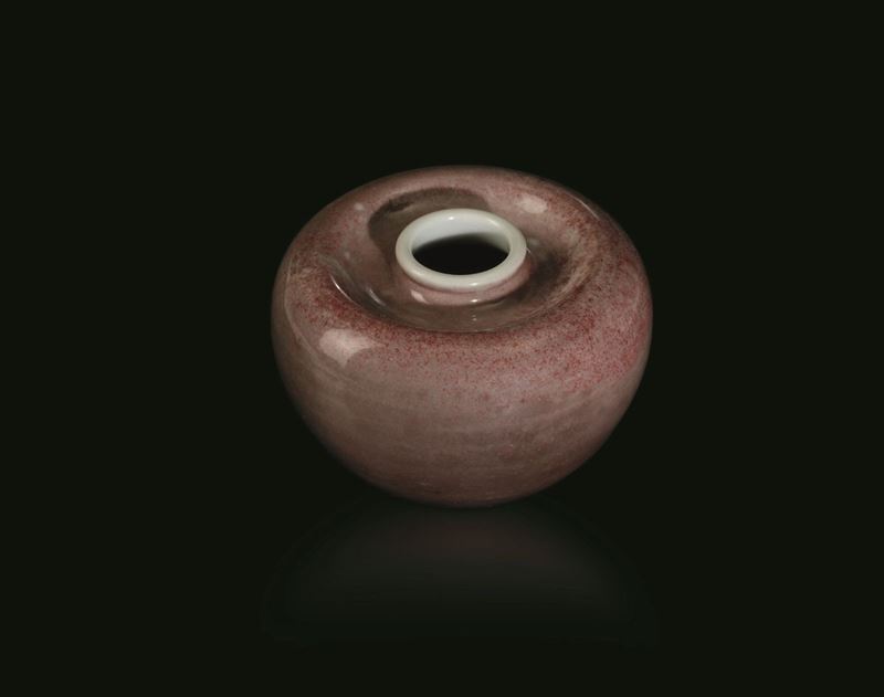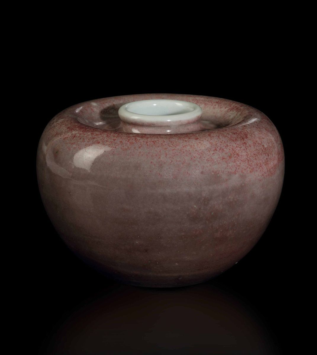 A rare inkwell in iron red enamelled porcelain, mark and Kangxi period (1662-1722). 10x7cm. Origin: Bluett & Sons, London