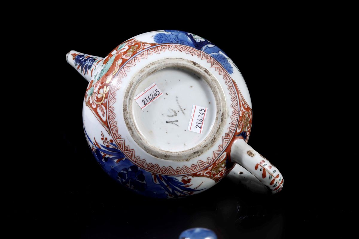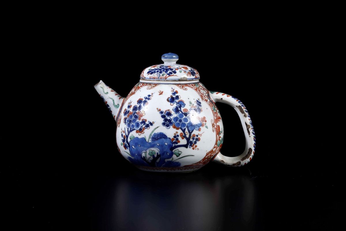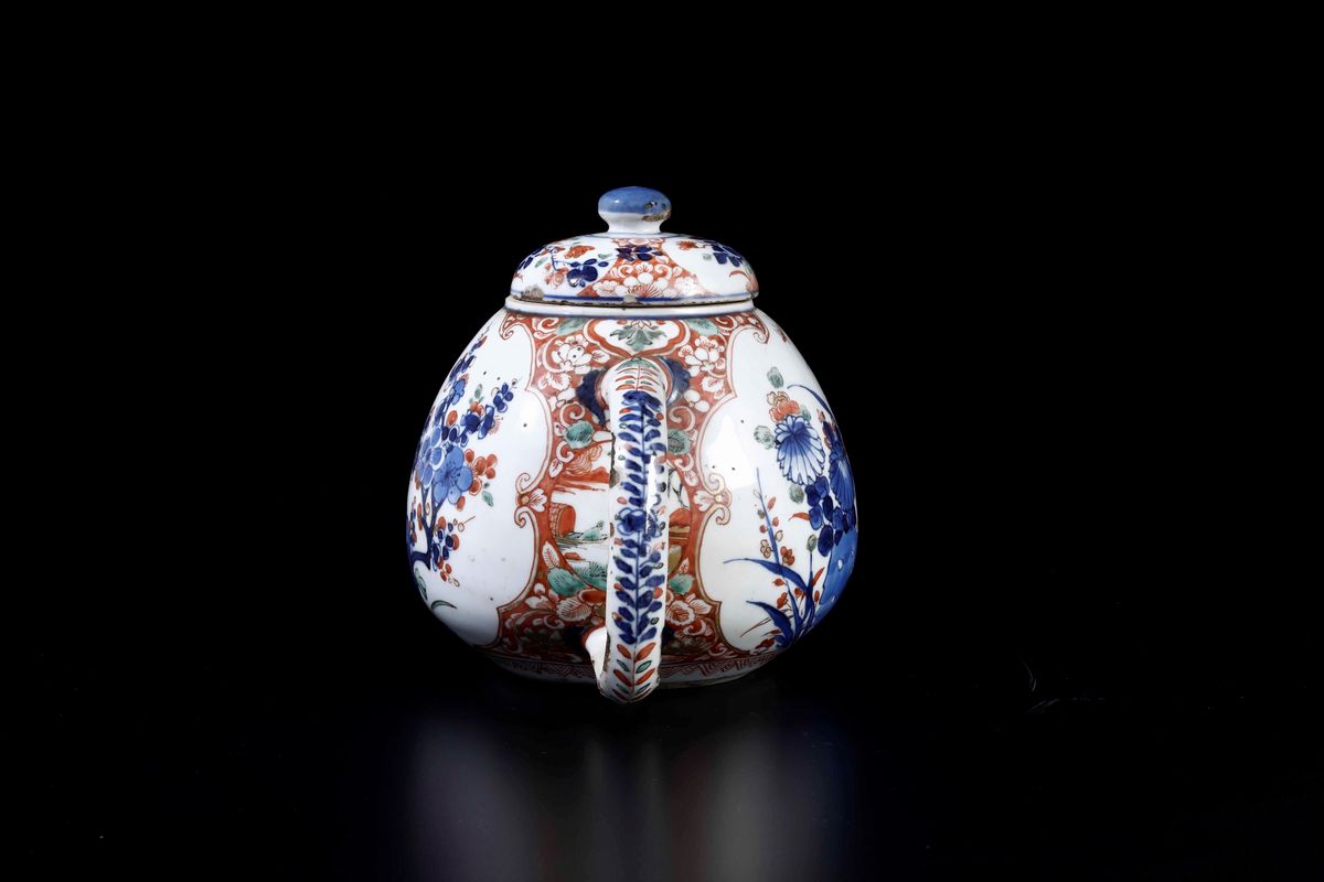 A teapot in Imari porcelain with flower decorations, Kangxi period (1662-1722). H 15cm