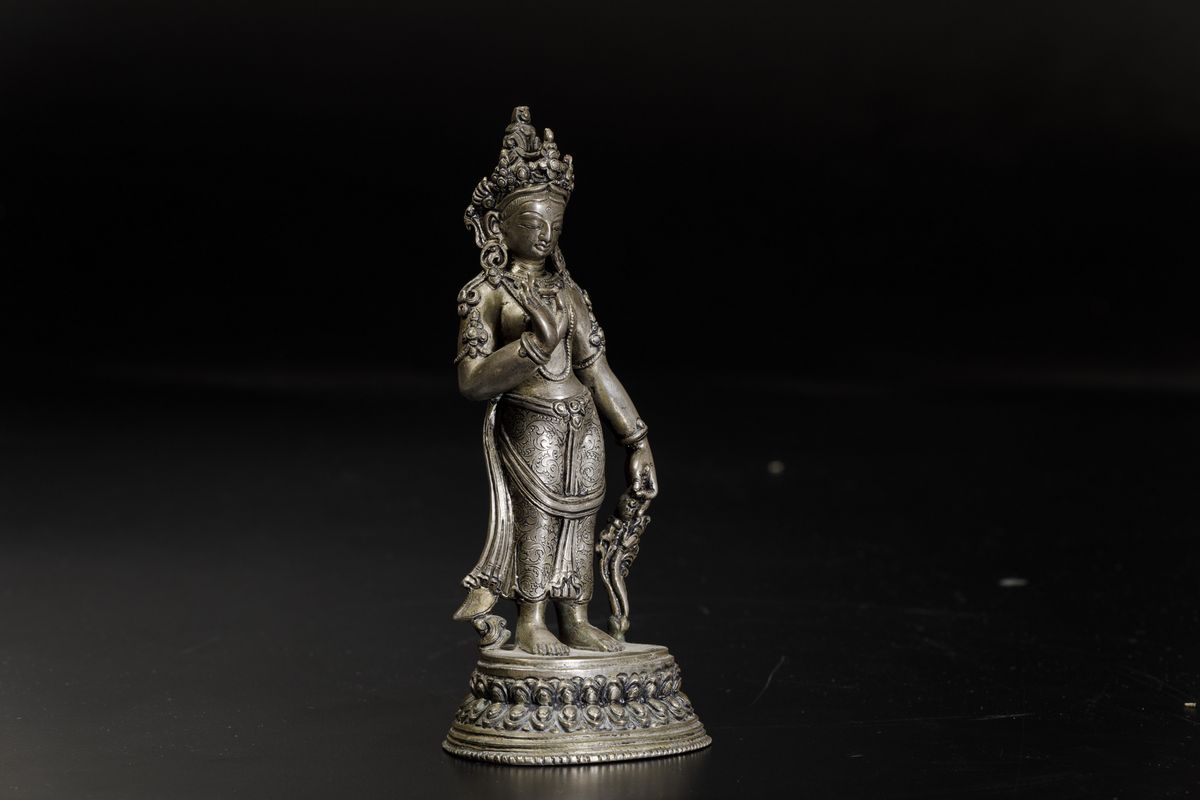 A figure of Padmapani standing on a double lotus flower. H 17cm