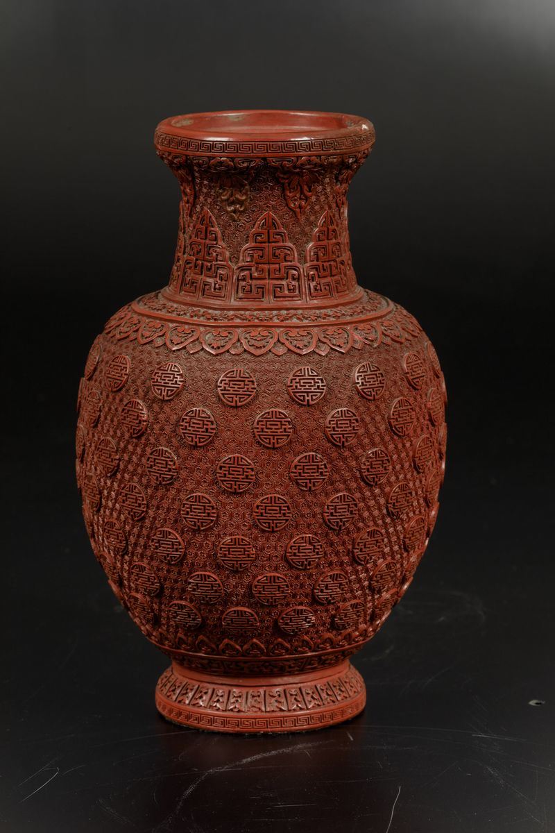 A vase with Taoist symbols and archaic-style spears as decorations, Qianlong period (1736-1796). H 28cm