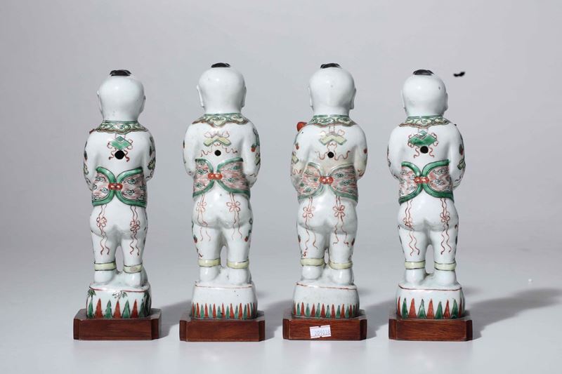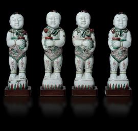 Four porcelain O'Boy figures, China, Qing Dynasty