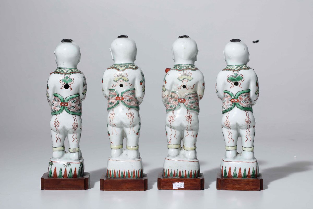 Four figures in polychrome porcelain of the Famille-Verte, Kangxi period (1662-1722). H 26cm