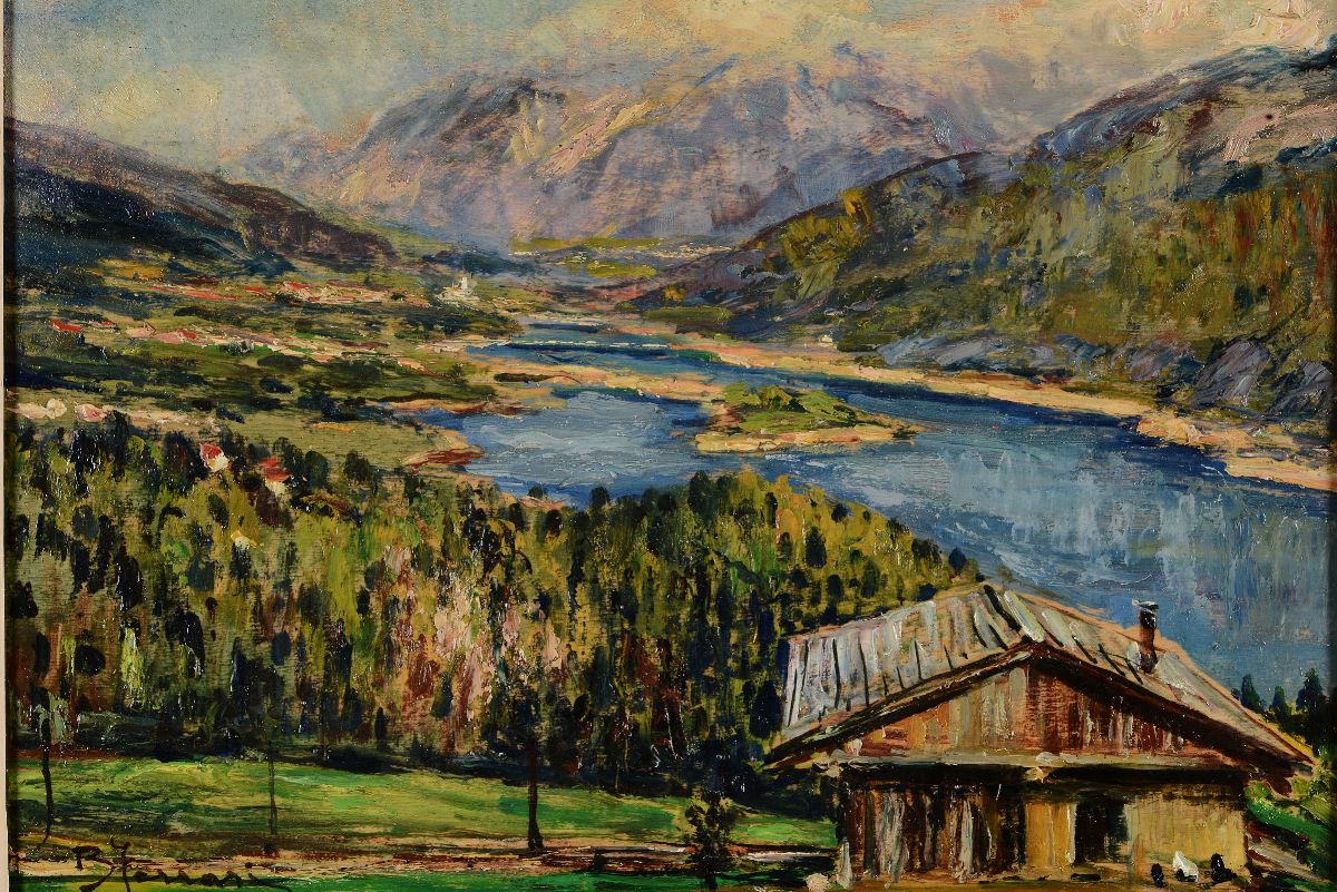 Berto Ferrari (1887 - 1965) Lago a Pieve di Cadore, 1956