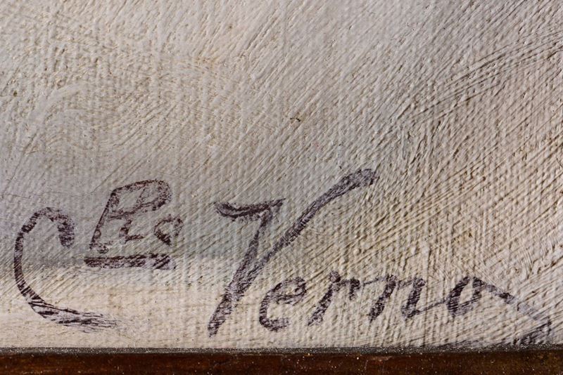 olio su tela, cm 46,5x59, firmato in basso a destra