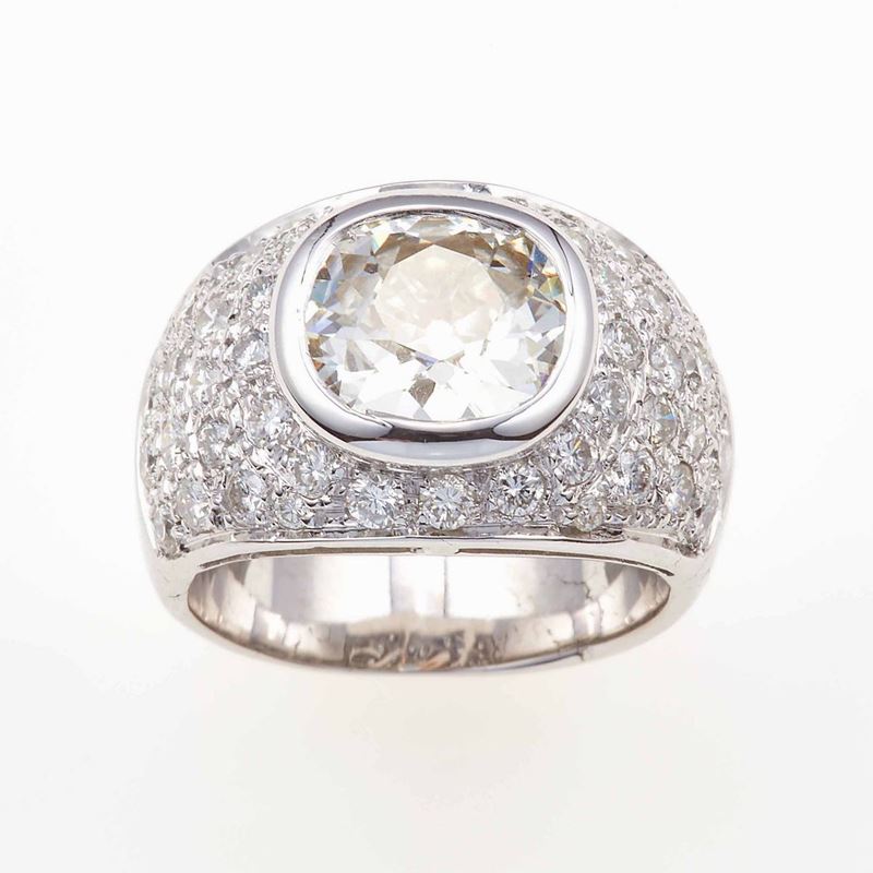 Anello con diamante taglio ovale e pavé di diamanti