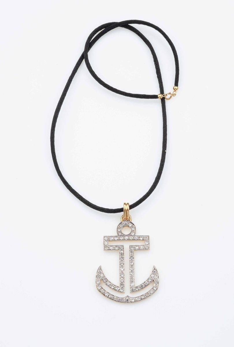 Lotto composto da un anello a fascia ed un pendente ancora con diamanti