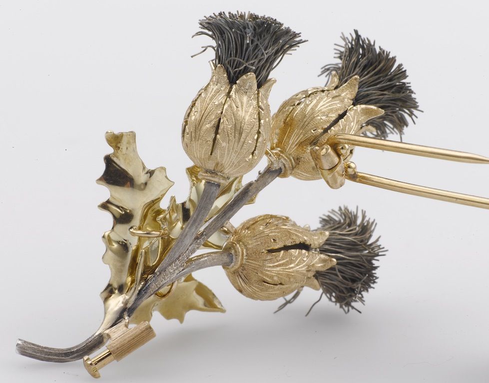 Two color gold and silver thistle clip-brooch. Signed M. Buccellati