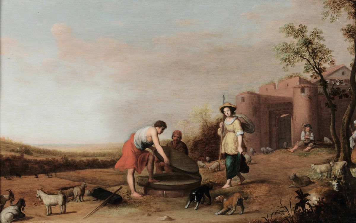 Cornelis Willaerts (Utrecht 1611-1666 ca) Il ritrovamento di Mosè Giacobbe e Rachele