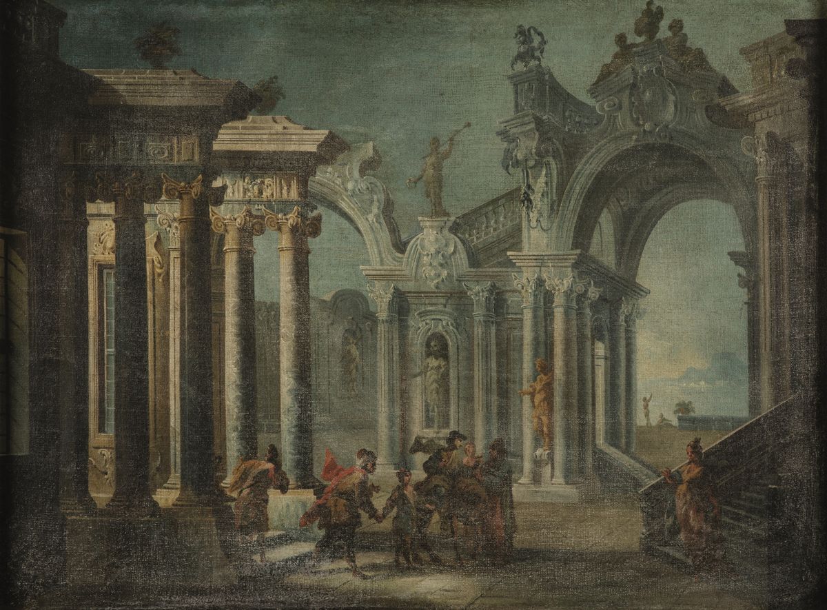 Nicolò Bertuzzi (Ancona 1710-1777) e Claudio Porroni (Bologna 1705-1784) Capriccio architettonico con figure