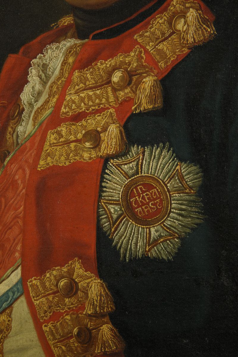 Spesso replicata dalla bottega di Batoni, l'invenzione originale si custodisce presso il Berchtesgaden Castle di Salisburgo, proveniente dalle raccolte della famiglia Wittelsbach, e a sua volta derivata da una composizione a figura intera conservata all'Alte Pinakothek di Monaco. Nella redazione salisburghese, l'elettore di Baviera Karl Theodor (1724-1799), stando alle fonti avvezzo frequentatore del pittore e del suo studio, appare ritratto a mezzo busto mentre sfoggia l'uniforme blu e le insegne dell'Ordine del Leone di Baviera. Il nostro esemplare, ammirabile per la bella qualità e la premura impiegata nella resa dei dettagli, si può considerare opera di un allievo particolarmente dotato vicino al maestro.